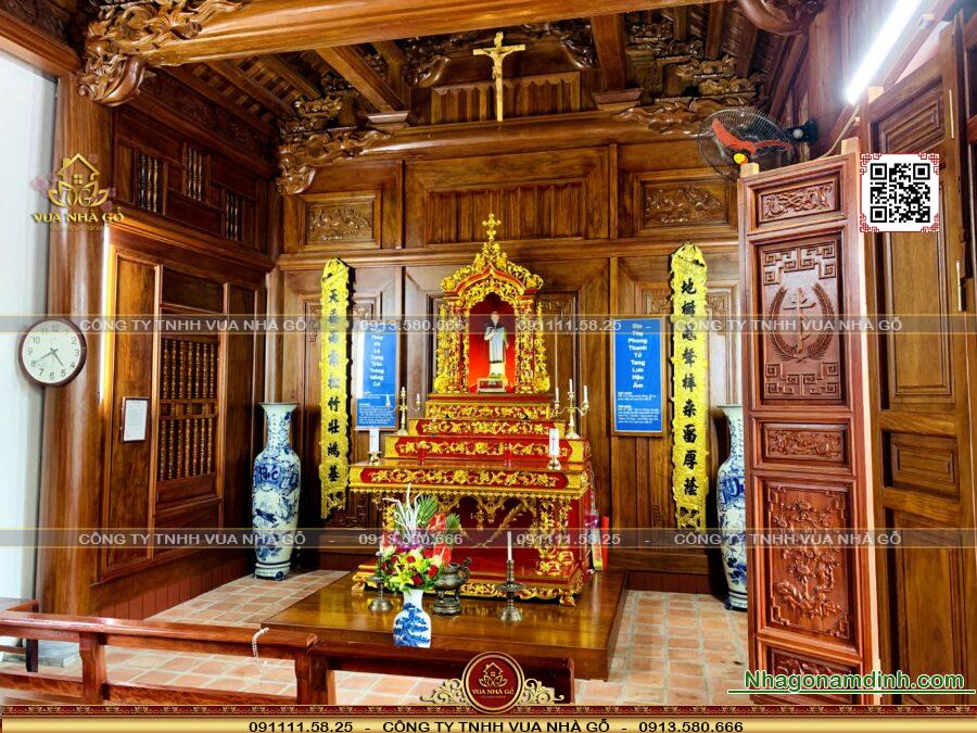 Nội Thất Nhà Gỗ 5 Gian Lim Nam Phi Thánh Tổ Đường!